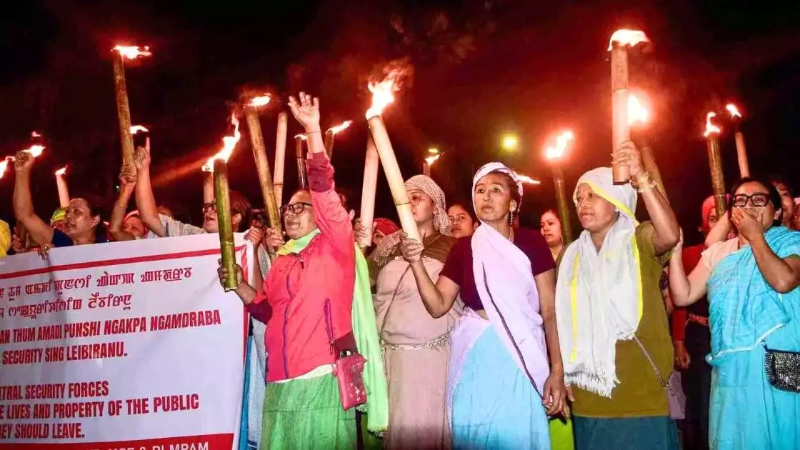 मणिपुर घाटी के जिलों में रविवार शाम को हजारों लोग विभिन्न स्थानों पर सड़कों पर उतर आए और हाल ही में हुए उस बम हमले का विरोध किया जिसमें दो बच्चे मारे गए थे।